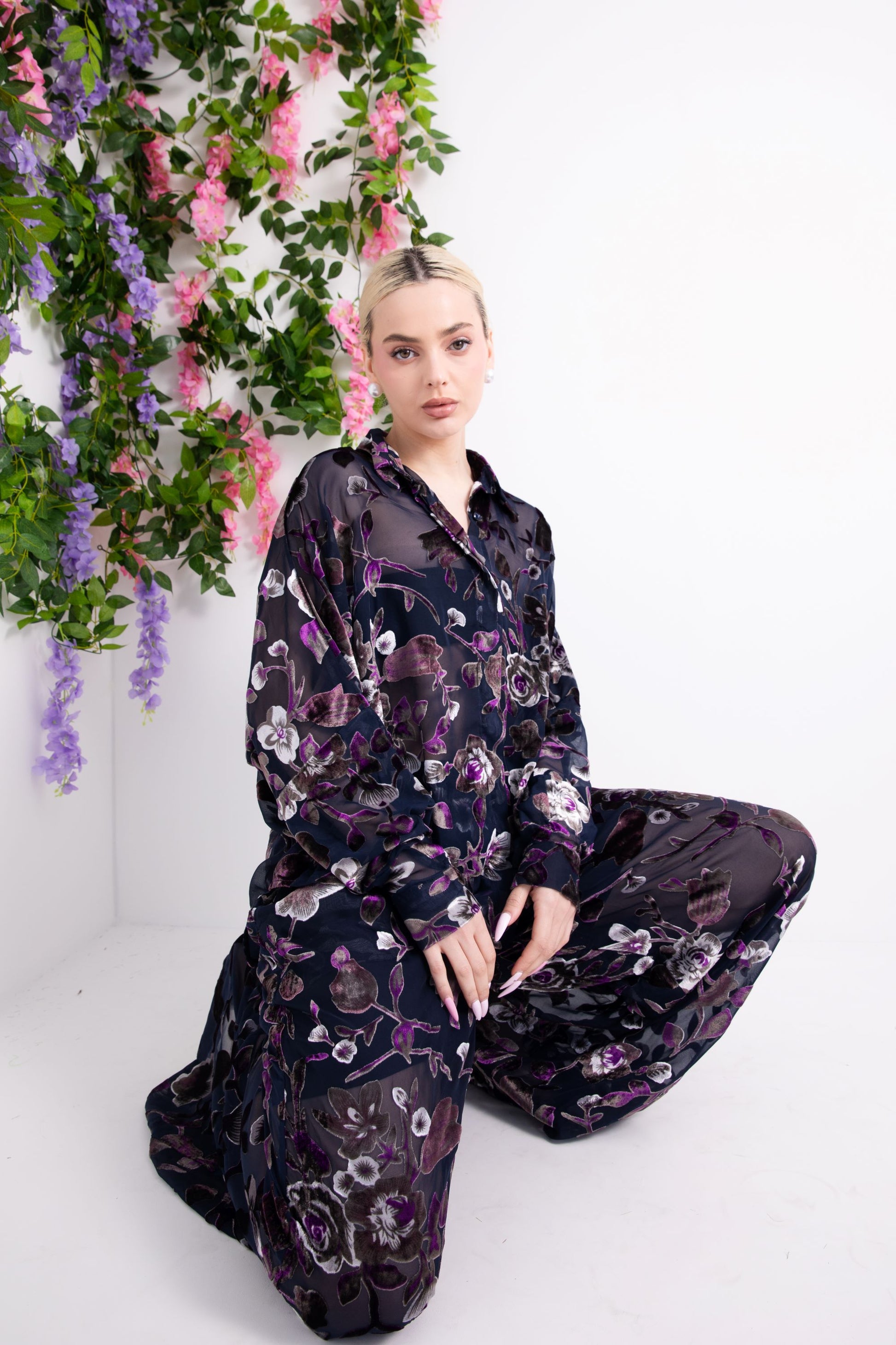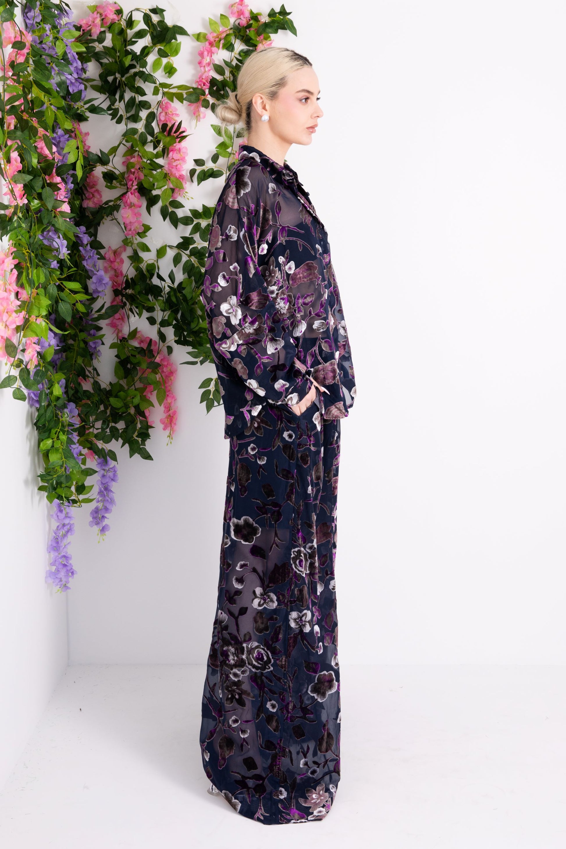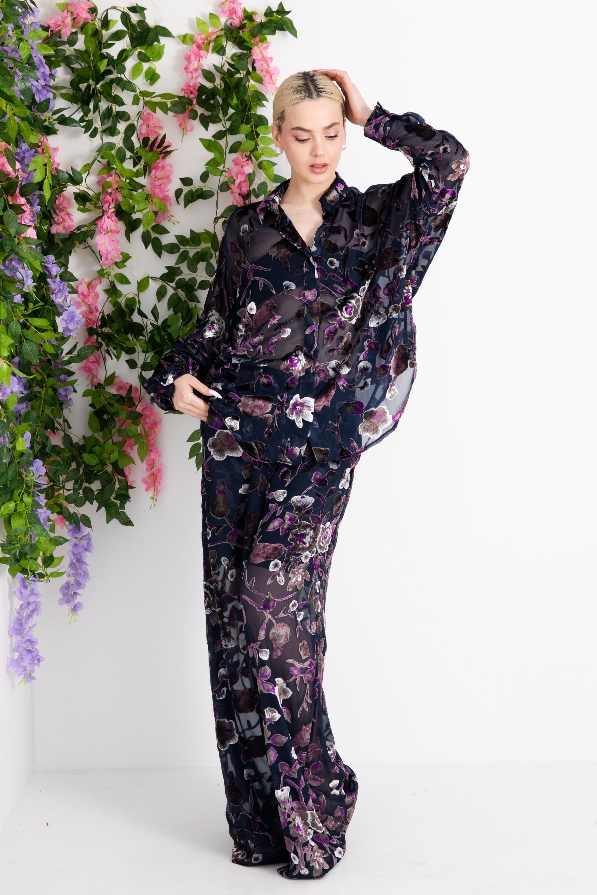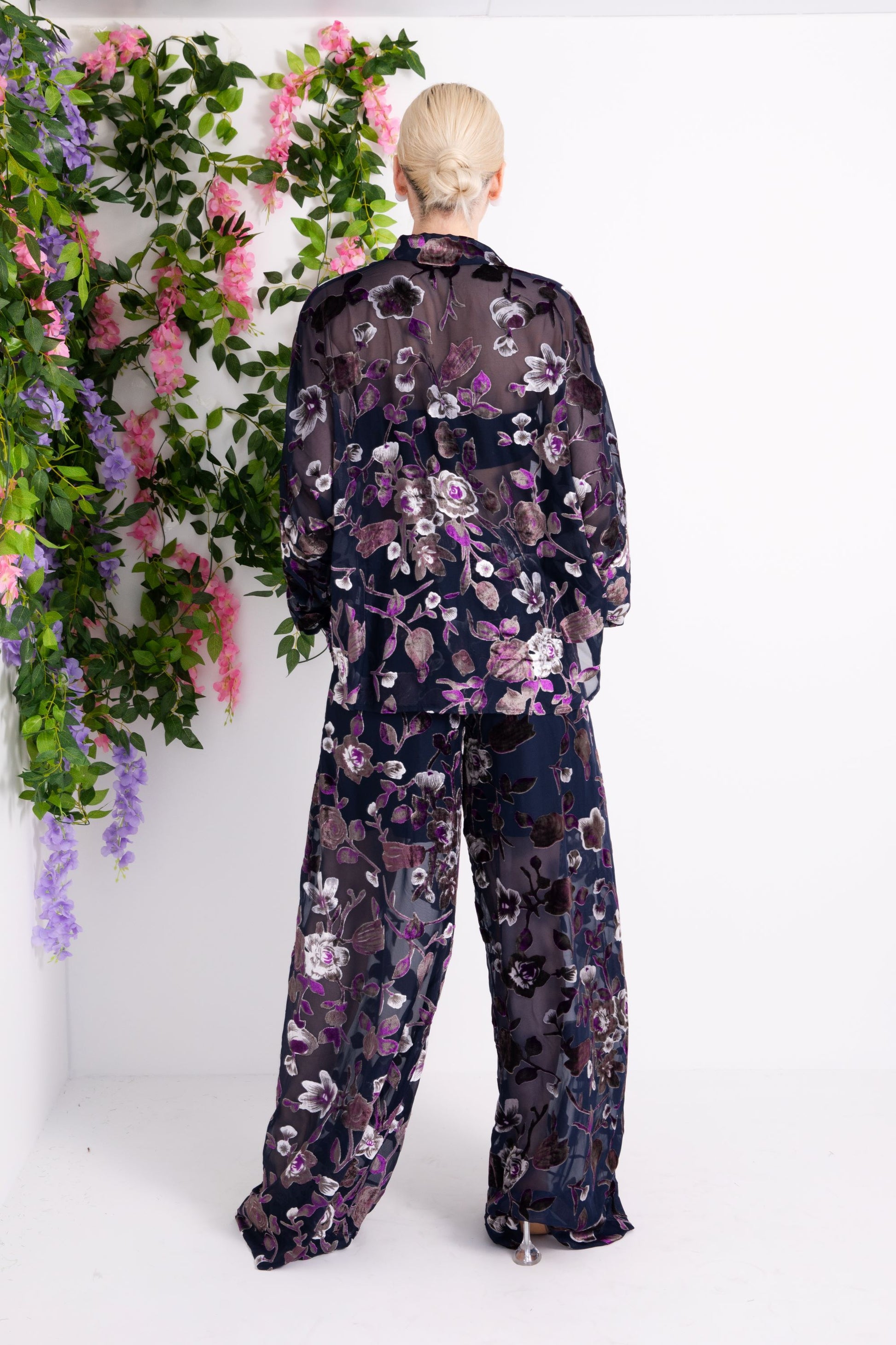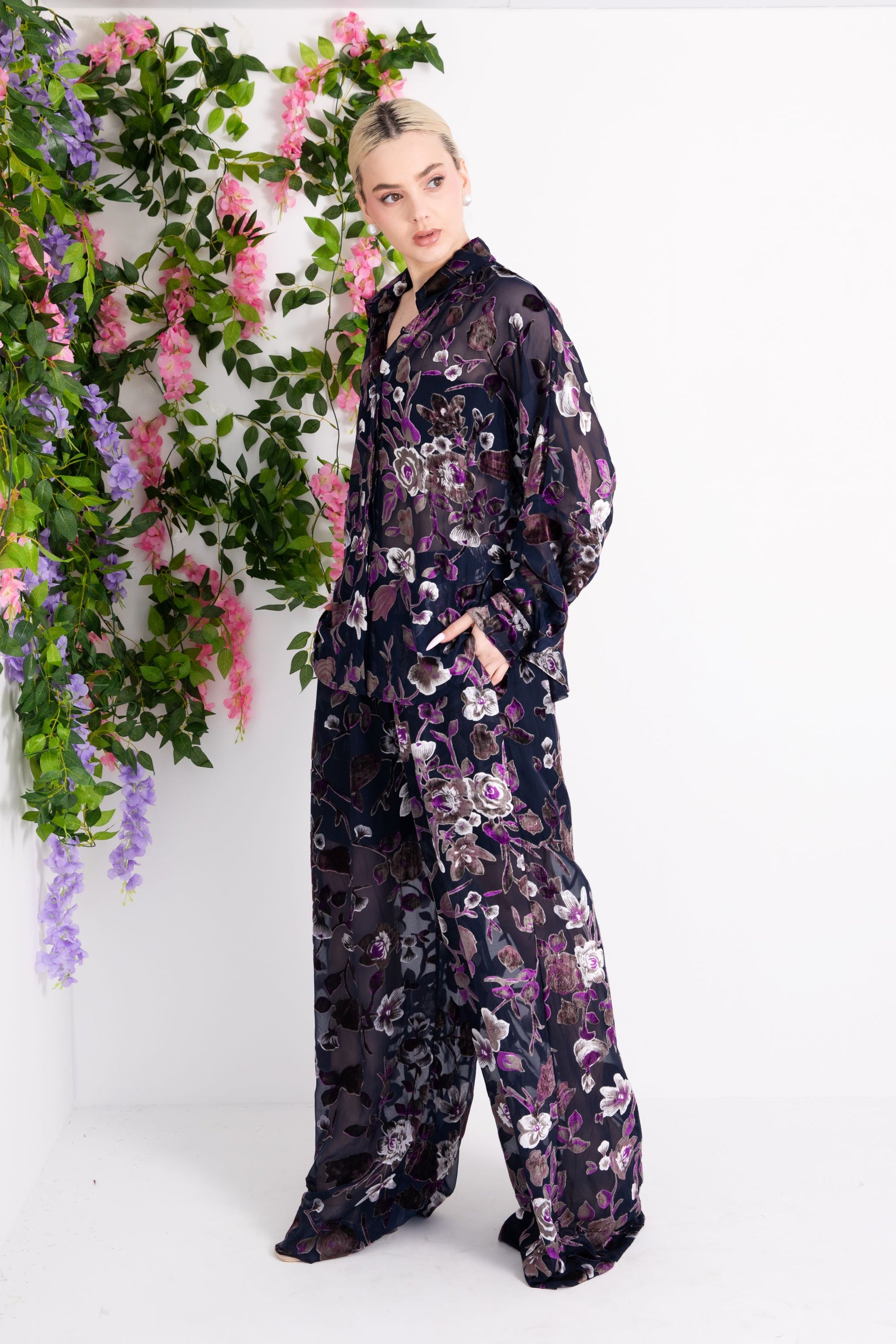 With an embossed floral pattern of velvet flowers in varying tones of midnight blue and purple, combined with a subtle sheen, Lena makes for a stunning visual effect. Perfect for boozy brunches with friends or a leisurely afternoon stroll while on